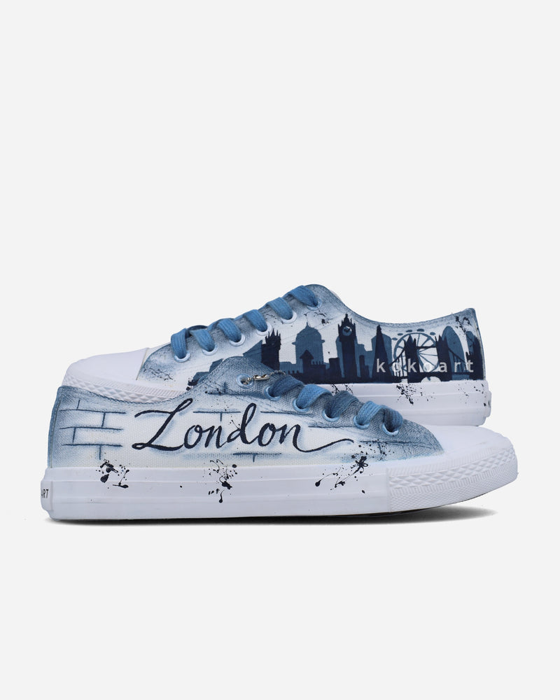 Blue London Skyline Hand Painted Shoes