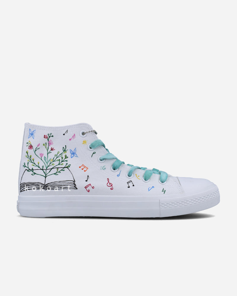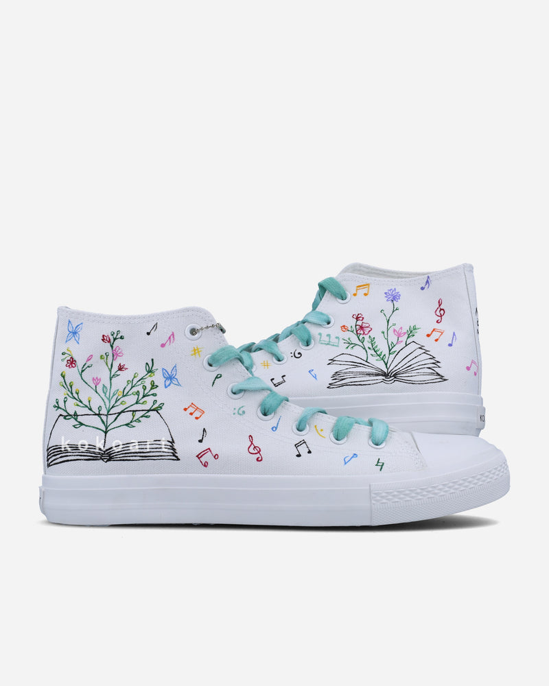Unsere Designs werden von Hand auf hochwertigen Canvas-Schuhen der Marke American Recorders mit wasserfester Stofffarbe bemalt, anschließend versiegelt und erhitzt, um die Langlebigkeit der Farben sicherzustellen. Unsere Produkte sind außerdem bei 30 Grad maschinenwaschbar.