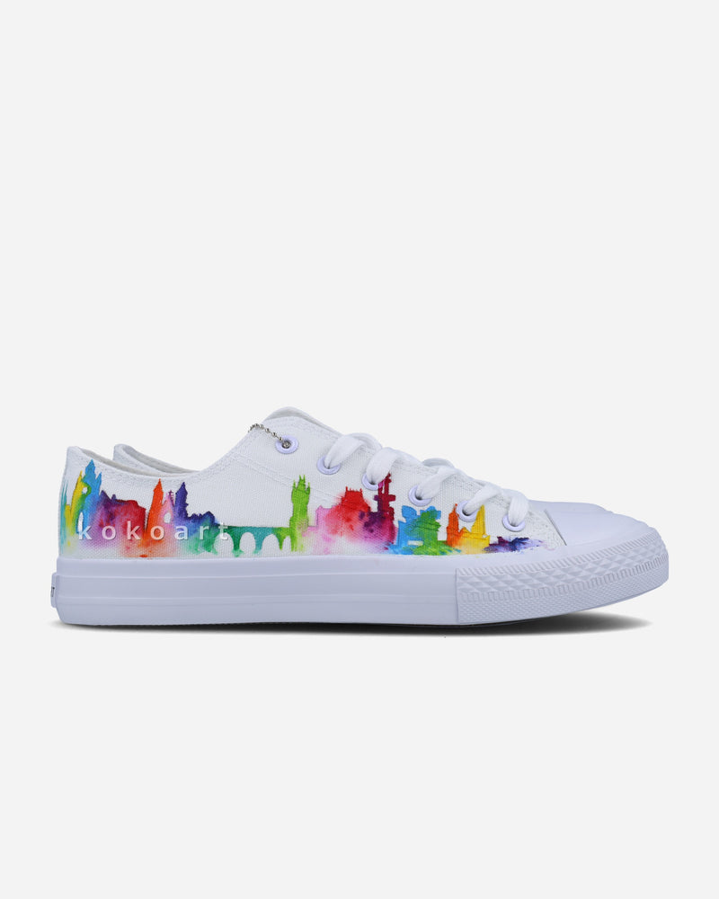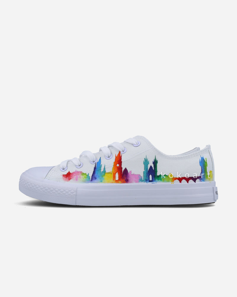 Unsere Designs werden von Hand auf hochwertigen Canvas-Schuhen der Marke American Recorders mit wasserfester Stofffarbe bemalt, anschließend versiegelt und erhitzt, um die Langlebigkeit der Farben sicherzustellen. Unsere Produkte sind außerdem bei 30 Grad maschinenwaschbar.