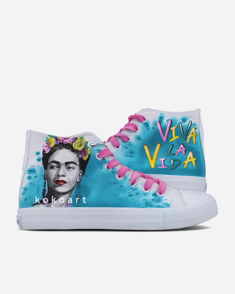 Frida Kahlo Blue Watercolour Hand Painted Shoes