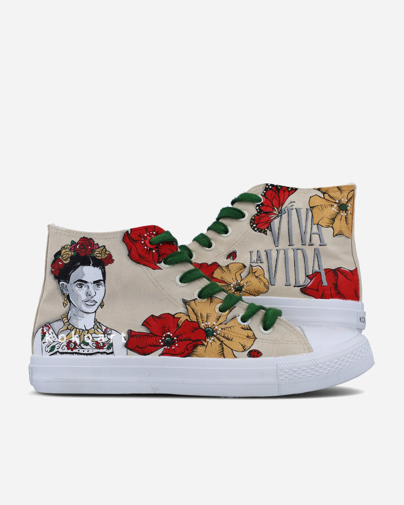 Frida Kahlo Cream Portrait Hand Painted Shoes