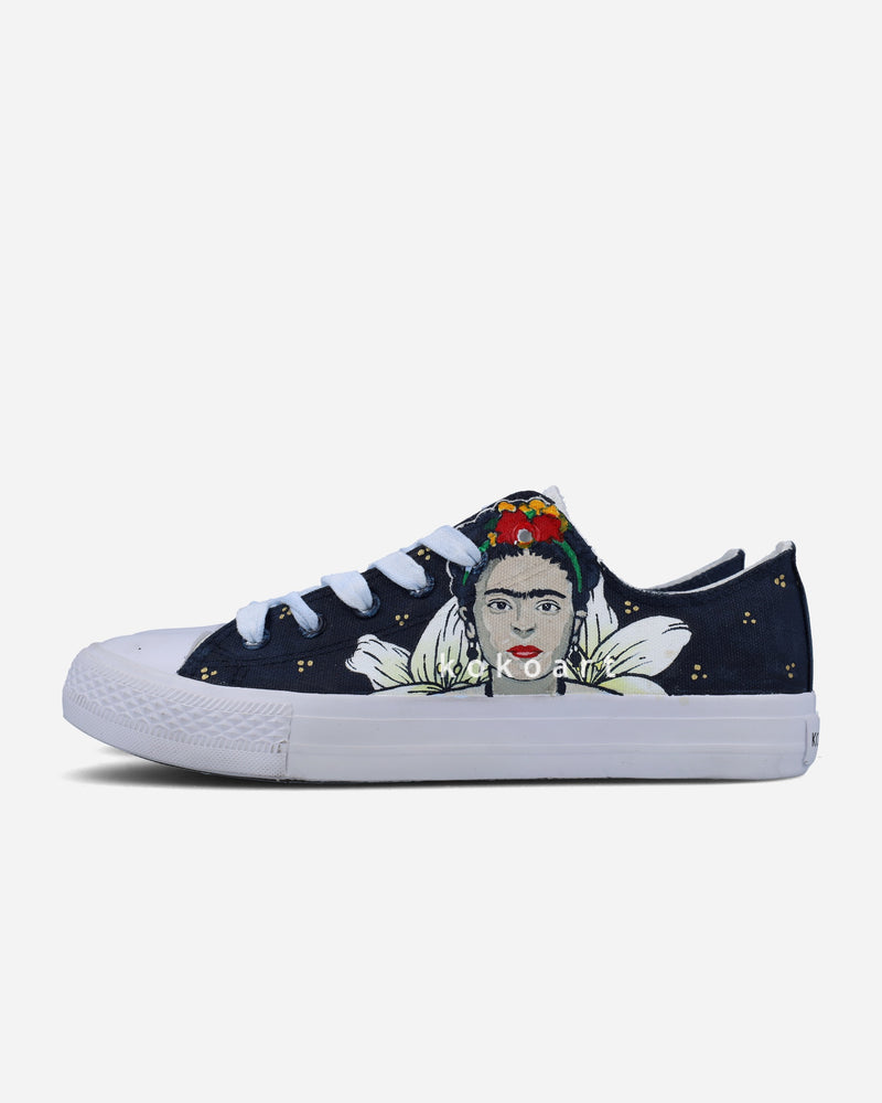 Frida Kahlo Navy Portrait Hand Painted Shoes