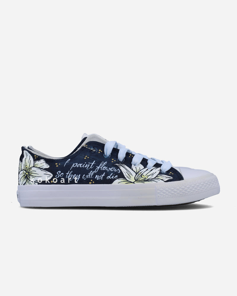 Unsere Designs werden von Hand auf hochwertigen Canvas-Schuhen der Marke American Recorders mit wasserfester Stofffarbe bemalt, anschließend versiegelt und erhitzt, um die Langlebigkeit der Farben zu gewährleisten. Unsere Produkte sind außerdem bei 30 Grad maschinenwaschbar.