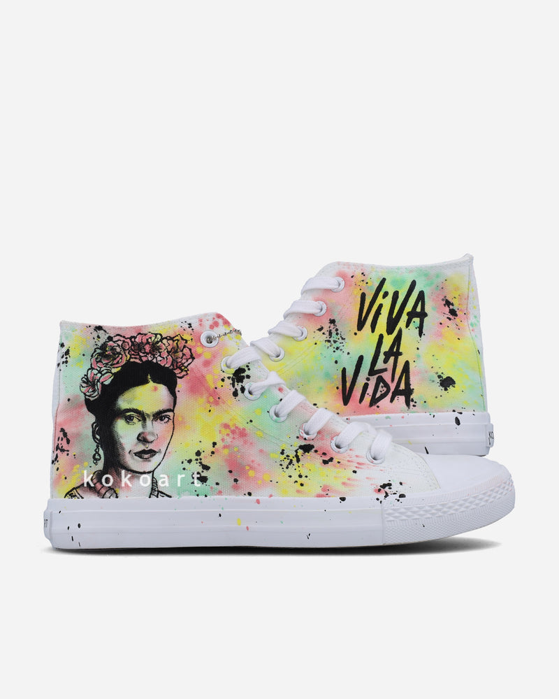 Frida Kahlo Sketchy Portrait Viva la Vida Hand Painted Shoes
