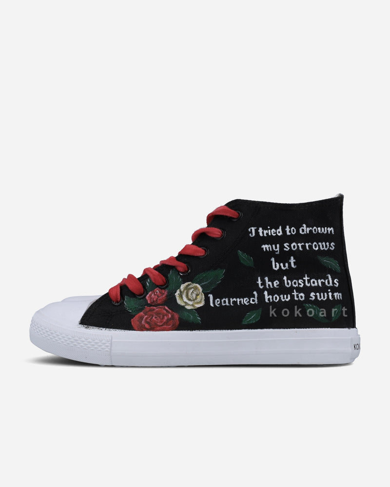 Unsere Designs werden von Hand auf hochwertigen Canvas-Schuhen der Marke American Recorders mit wasserfester Stofffarbe bemalt, anschließend versiegelt und erhitzt, um die Langlebigkeit der Farben zu gewährleisten. Unsere Produkte sind außerdem bei 30 Grad maschinenwaschbar.