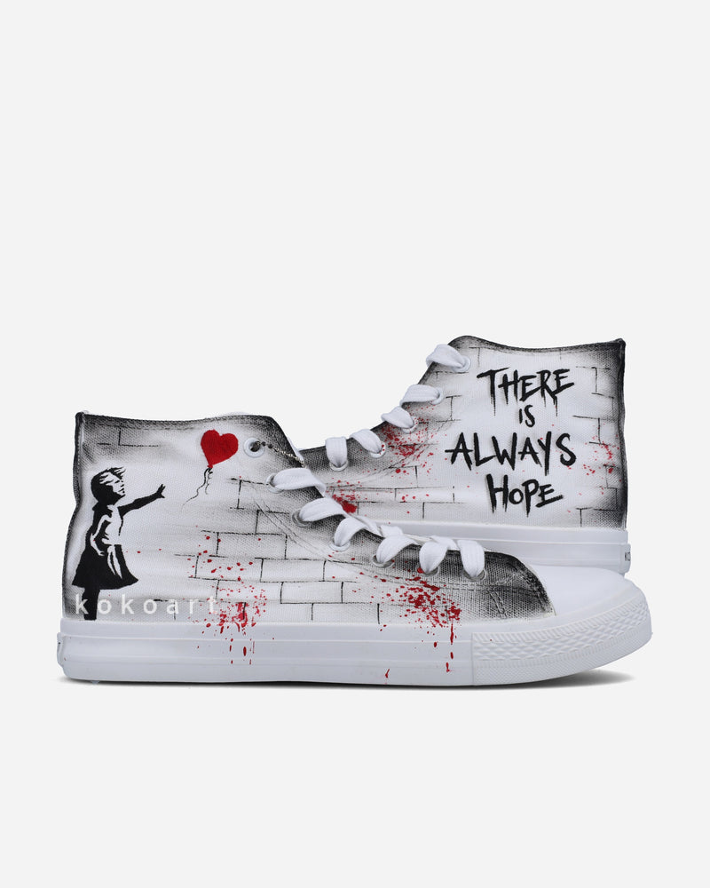 Girl with Balloon There is Always Hope Hand Painted Shoes