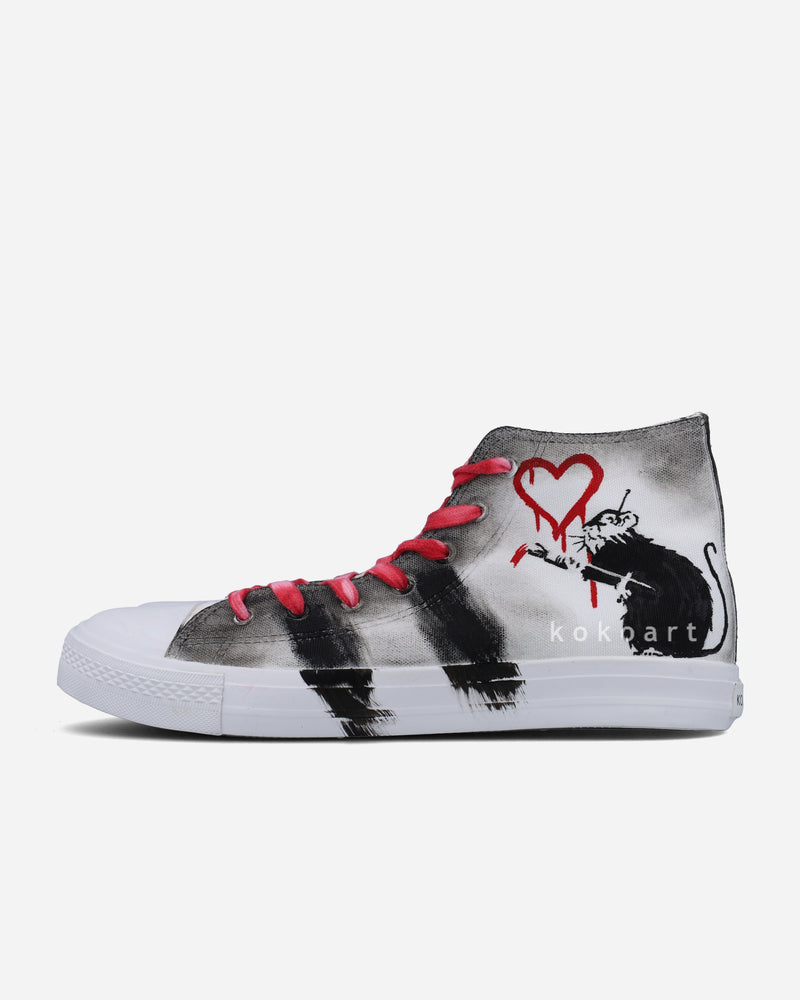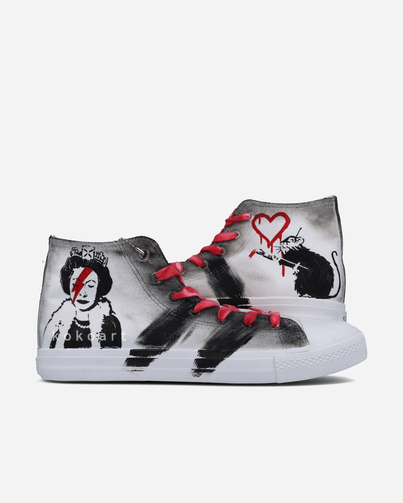 Unsere Designs werden von Hand auf hochwertigen Canvas-Schuhen der Marke American Recorders mit wasserfester Stofffarbe bemalt, anschließend versiegelt und erhitzt, um die Langlebigkeit der Farben sicherzustellen. Unsere Produkte sind außerdem bei 30 Grad maschinenwaschbar.