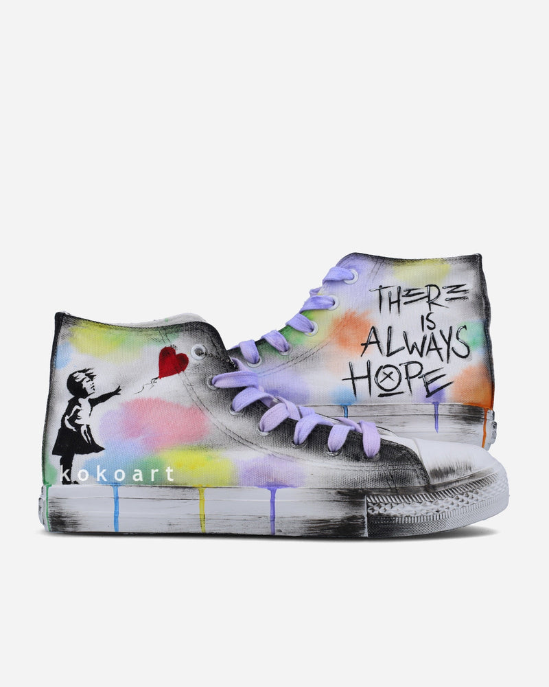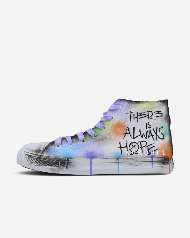 Graffiti There is Always Hope Watercolour Hand Painted Shoes