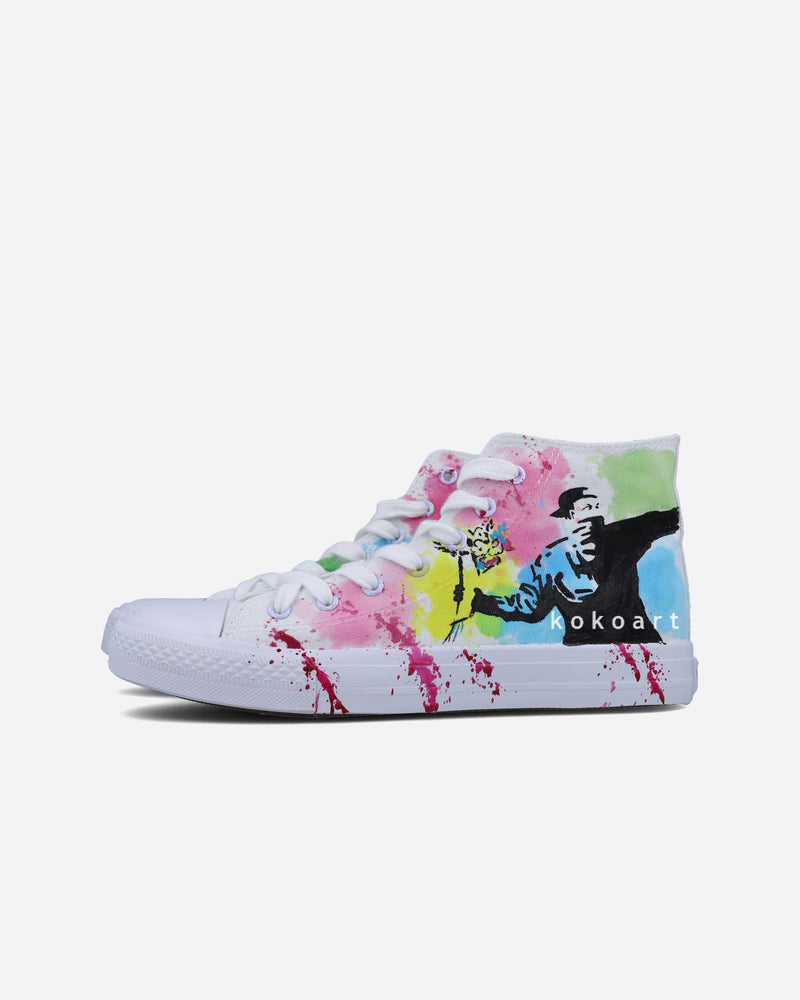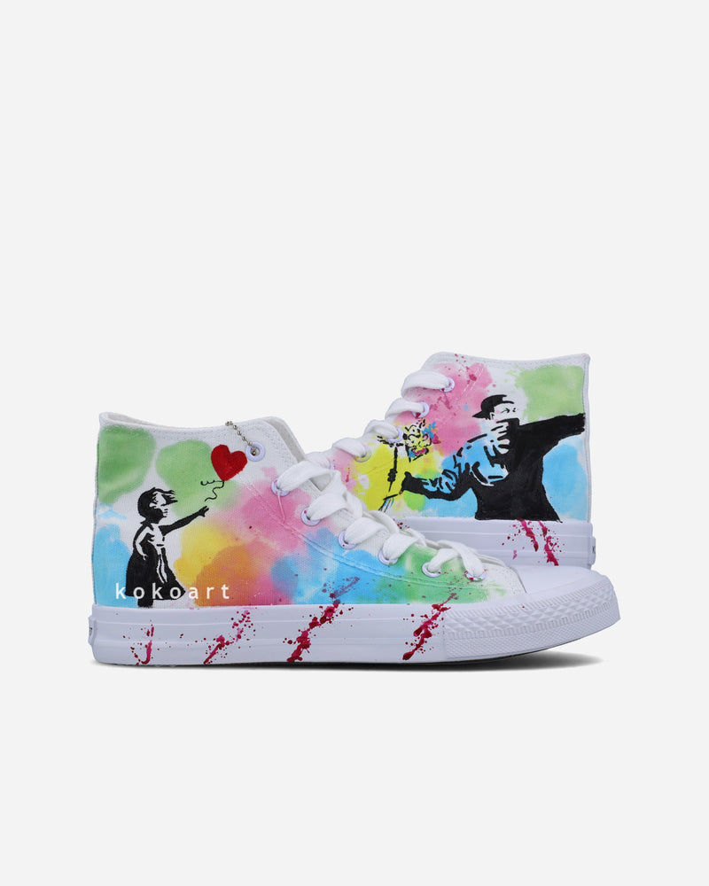 Unsere Designs werden von Hand auf hochwertigen Canvas-Schuhen der Marke American Recorders mit wasserfester Stofffarbe bemalt, anschließend versiegelt und erhitzt, um die Langlebigkeit der Farben sicherzustellen. Unsere Produkte sind außerdem bei 30 Grad maschinenwaschbar.