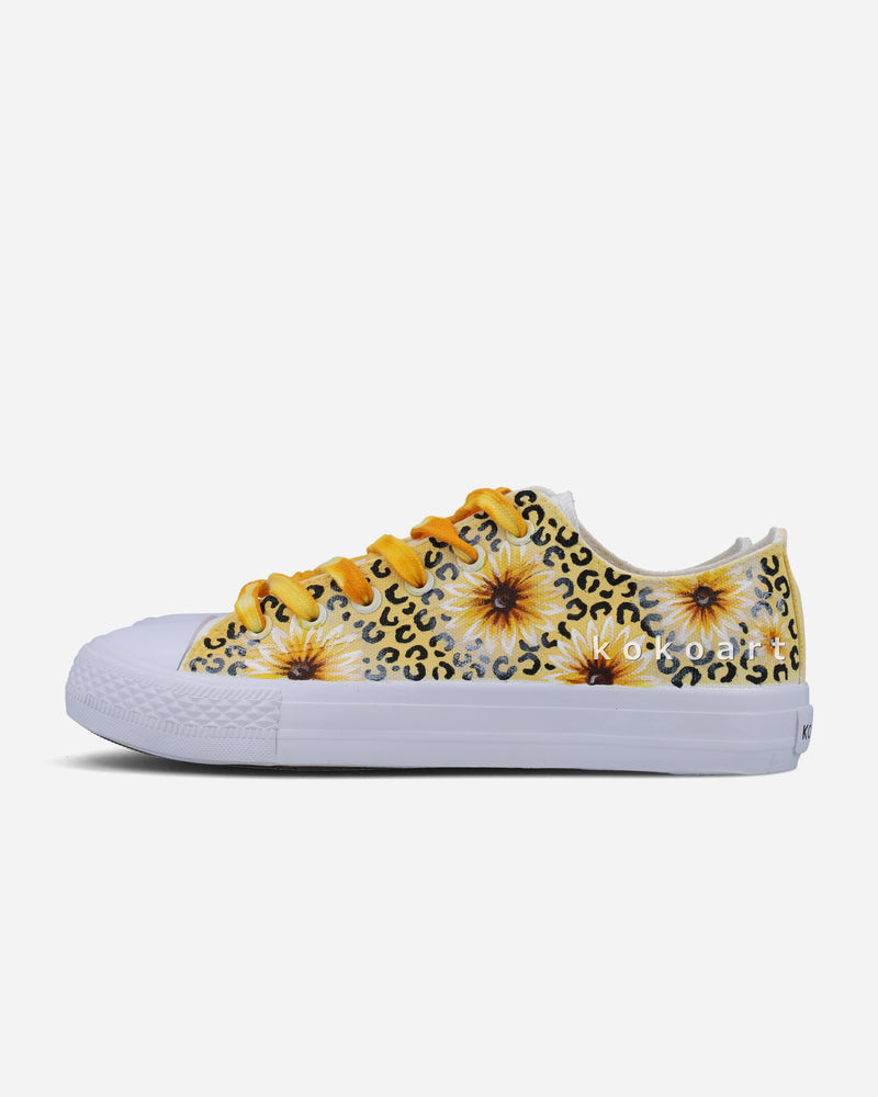 Das Hauptdesign wird nur auf der Außenseite jedes Schuhs bemalt. Die Innenseiten werden entweder mit Aquarell-/Texturverläufen dekoriert oder bleiben schlicht weiß. Dies überlassen wir dem Künstler, je nachdem, was am besten zum gewählten Design passt.