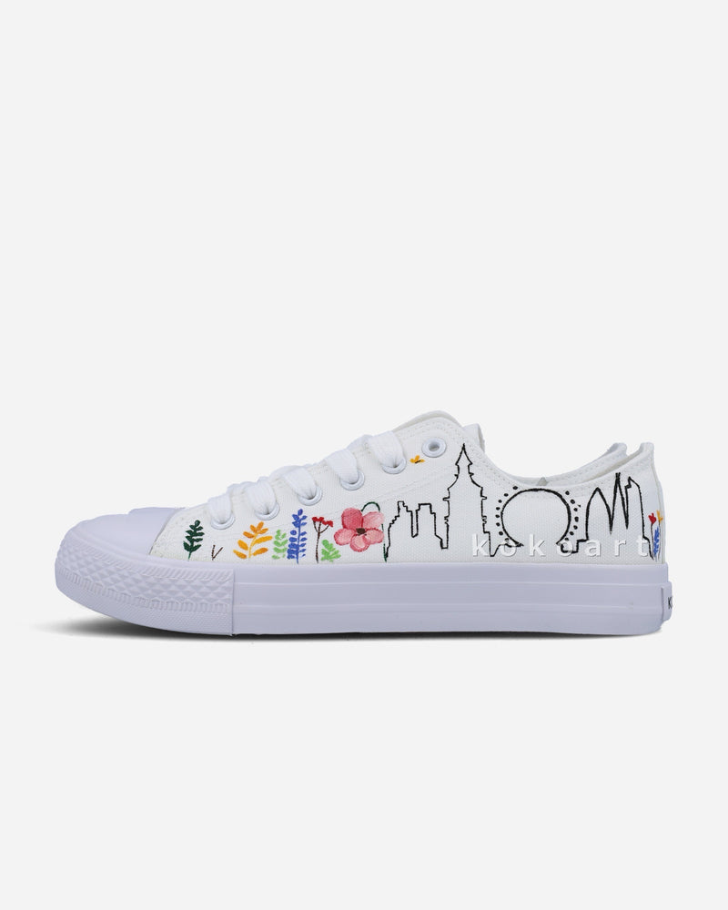 Unsere Designs werden von Hand auf hochwertigen Canvas-Schuhen der Marke American Recorders mit wasserfester Stofffarbe bemalt, anschließend versiegelt und erhitzt, um die Langlebigkeit der Farben sicherzustellen. Unsere Produkte sind außerdem bei 30 Grad maschinenwaschbar.