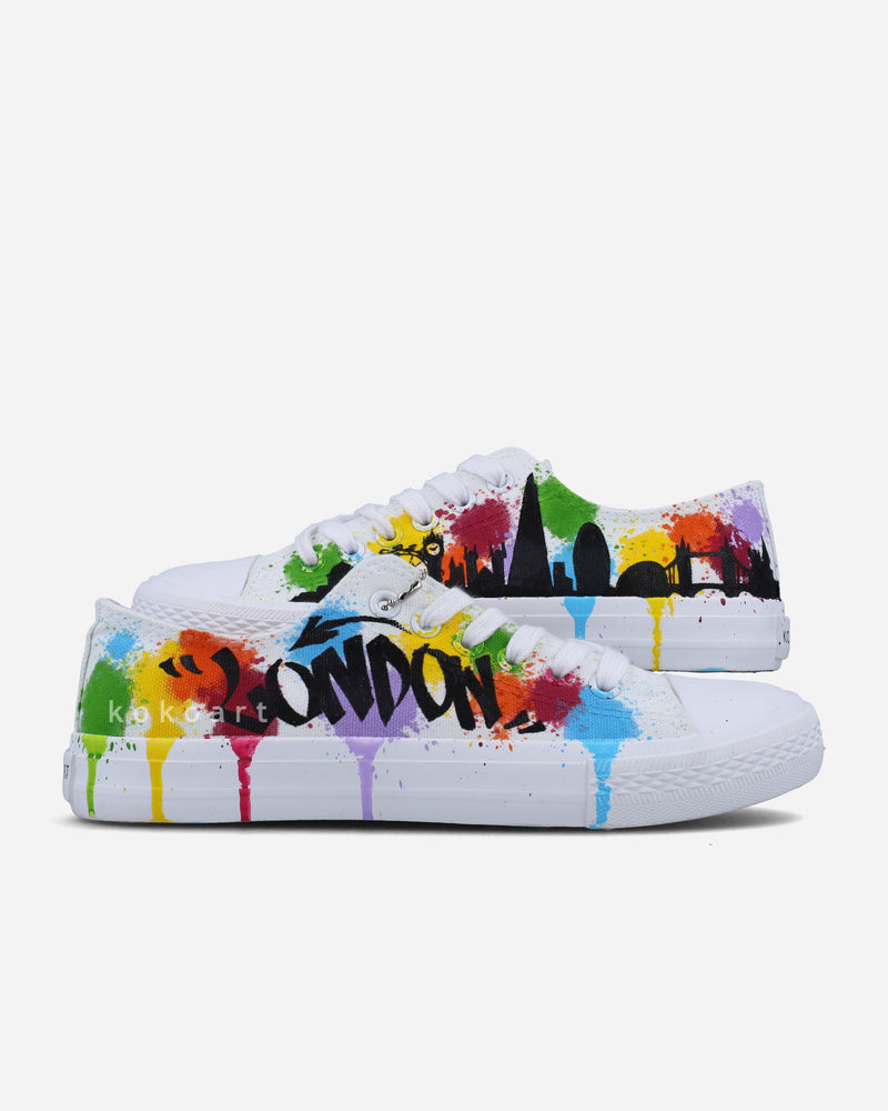 Unsere Designs werden von Hand auf hochwertigen Canvas-Schuhen der Marke American Recorders mit wasserfester Stofffarbe bemalt, anschließend versiegelt und erhitzt, um die Langlebigkeit der Farben sicherzustellen. Unsere Produkte sind außerdem bei 30 Grad maschinenwaschbar.