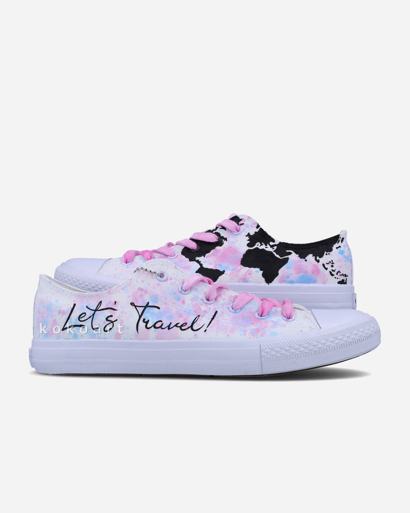 Pink Watercolour Let’s Travel Hand Painted Shoes