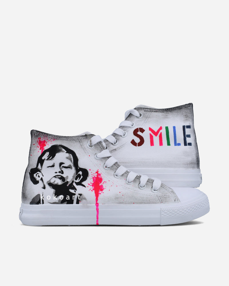 Unsere Designs werden von Hand auf hochwertigen Canvas-Schuhen der Marke American Recorders mit wasserfester Stofffarbe bemalt, anschließend versiegelt und erhitzt, um die Langlebigkeit der Farben sicherzustellen. Unsere Produkte sind außerdem bei 30 Grad maschinenwaschbar.