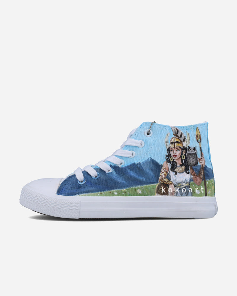 Unsere Designs werden von Hand auf hochwertigen Canvas-Schuhen der Marke American Recorders mit wasserfester Stofffarbe bemalt, anschließend versiegelt und erhitzt, um die Langlebigkeit der Farben sicherzustellen. Unsere Produkte sind außerdem bei 30 Grad maschinenwaschbar.