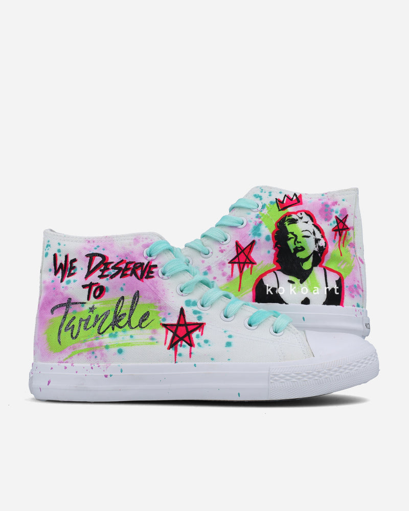 Unsere Designs werden von Hand auf hochwertigen Canvas-Schuhen der Marke American Recorders mit wasserfester Stofffarbe bemalt, anschließend versiegelt und erhitzt, um die Langlebigkeit der Farben sicherzustellen. Unsere Produkte sind außerdem bei 30 Grad maschinenwaschbar.
