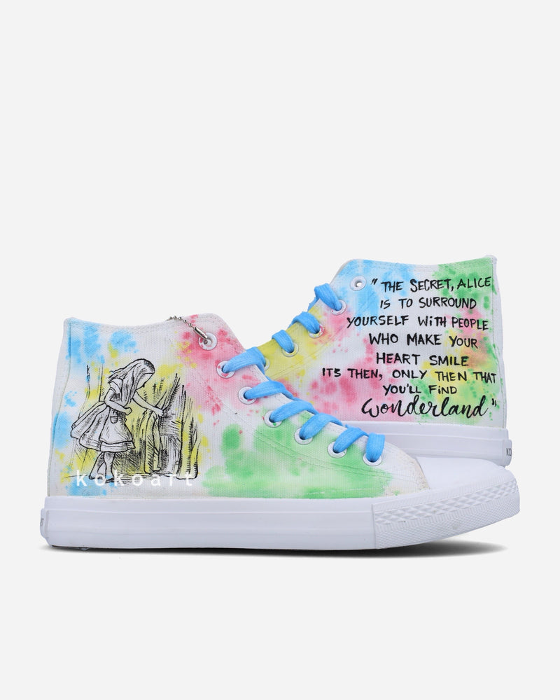 Our designs are hand painted on high quality American Recorders branded canvas shoes with waterproof fabric paint, which is then sealed and heated to ensure the longevity of the colours. Our products are also machine washable at 30 degrees.