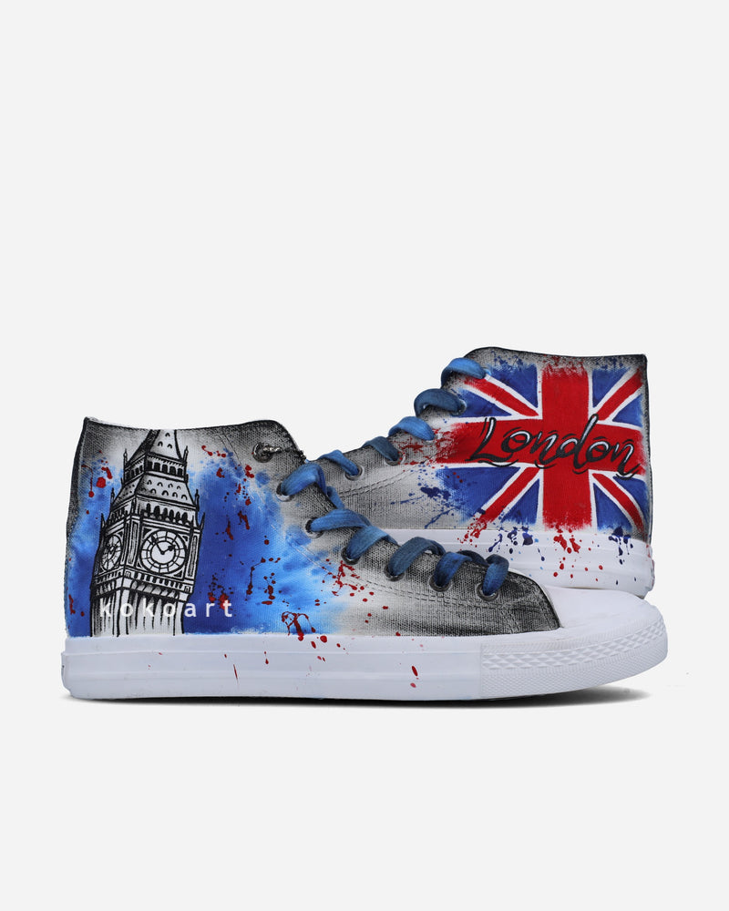 Our designs are hand painted on high quality American Recorders branded canvas shoes with waterproof fabric paint, which is then sealed and heated to ensure the longevity of the colours. Our products are also machine washable at 30 degrees.