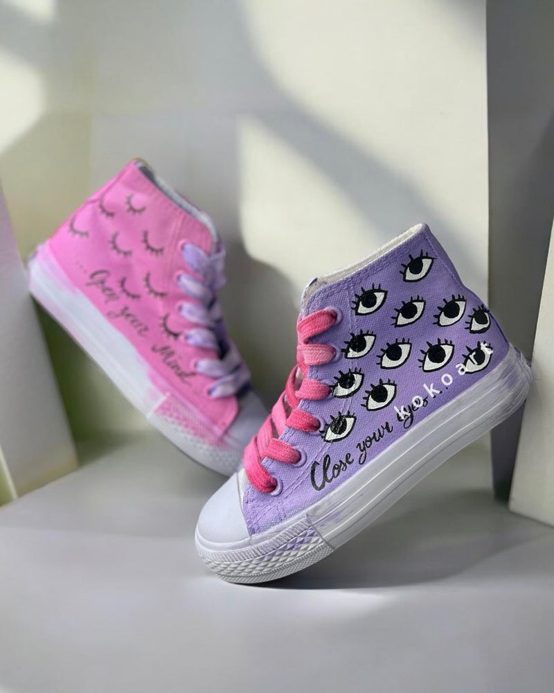 Our designs are hand painted on high quality American Recorders branded canvas shoes with waterproof fabric paint, which is then sealed and heated to ensure the longevity of the colours. Our products are also machine washable at 30 degrees.