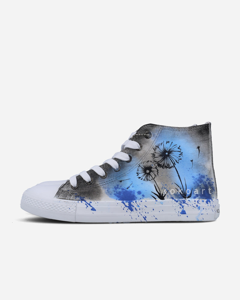 Our designs are hand painted on high quality American Recorders branded canvas shoes with waterproof fabric paint, which is then sealed and heated to ensure the longevity of the colours. Our products are also machine washable at 30 degrees.