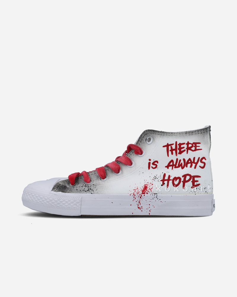 Each design can be fully customised. You can tell us in the design description box or you can upload a file with the exact customisation you wish. For example you can change the colour theme, swap a character or a portrait to your own choosing etc. You can also choose any of the four shoe styles below.