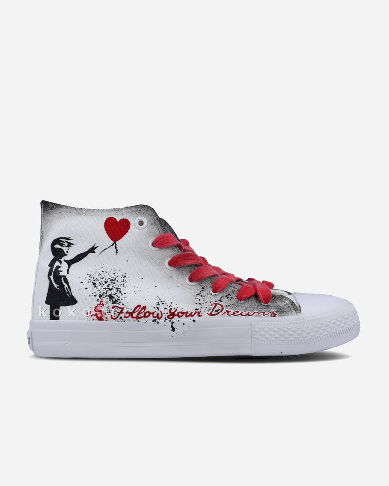 Our designs are hand painted on high quality American Recorders branded canvas shoes with waterproof fabric paint, which is then sealed and heated to ensure the longevity of the colours. Our products are also machine washable at 30 degrees.