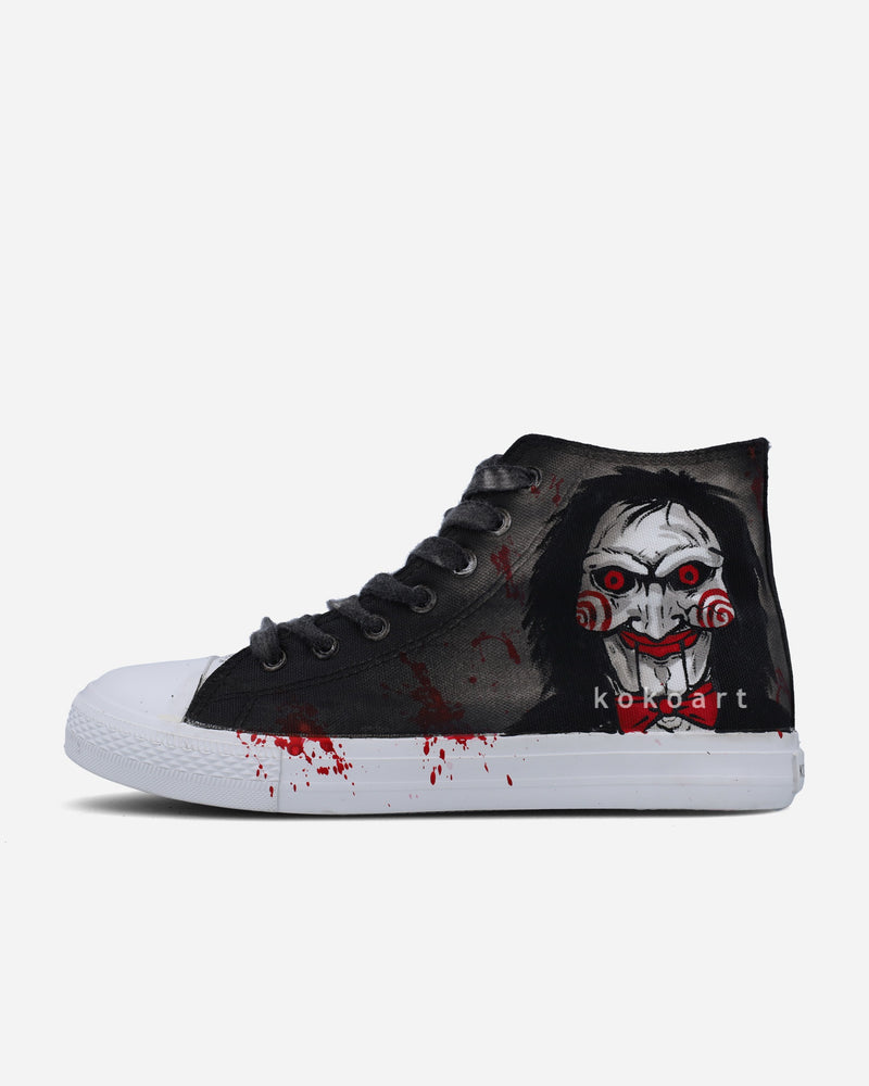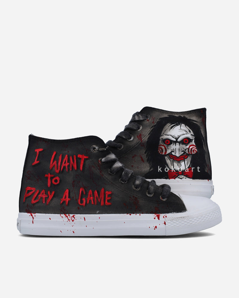 Each design can be fully customised. You can tell us in the design description box or you can upload a file with the exact customisation you wish. For example you can change the colour theme, swap a character or a portrait to your own choosing etc. You can also choose any of the four shoe styles below.