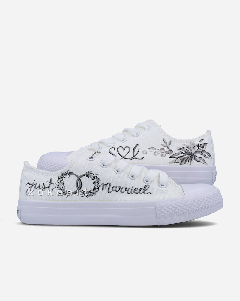 The main design is only painted on the outer side of each shoe. The inner sides are decorated with watercolour/textured shading or they are left blank white. This is left to the artist based on what goes best with the chosen design.