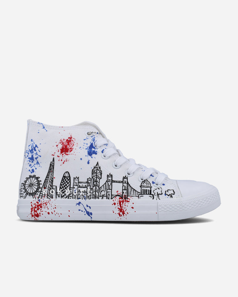 Our designs are hand painted on high quality American Recorders branded canvas shoes with waterproof fabric paint, which is then sealed and heated to ensure the longevity of the colours. Our products are also machine washable at 30 degrees.