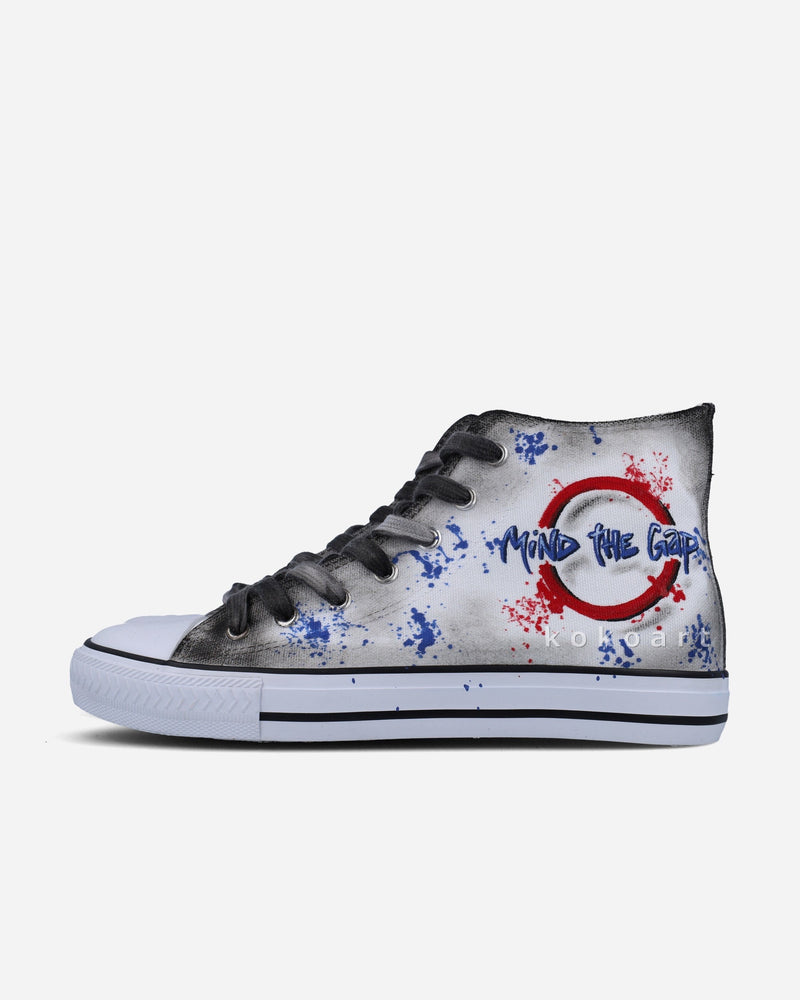 Each design can be fully customised. You can tell us in the design description box or you can upload a file with the exact customisation you wish. For example you can change the colour theme, swap a character or a portrait to your own choosing etc. You can also choose any of the four shoe styles below.