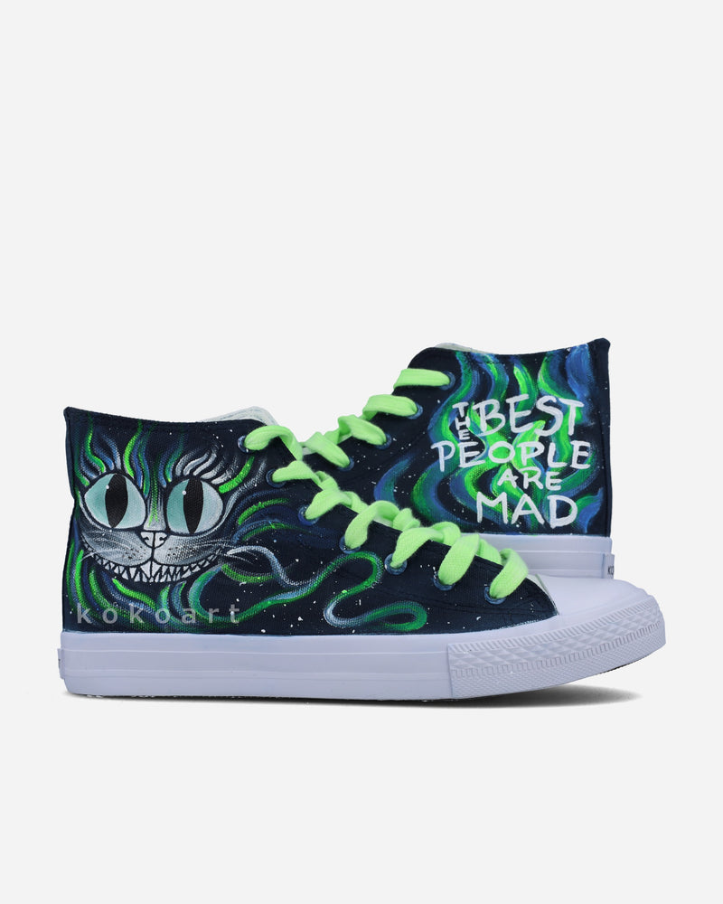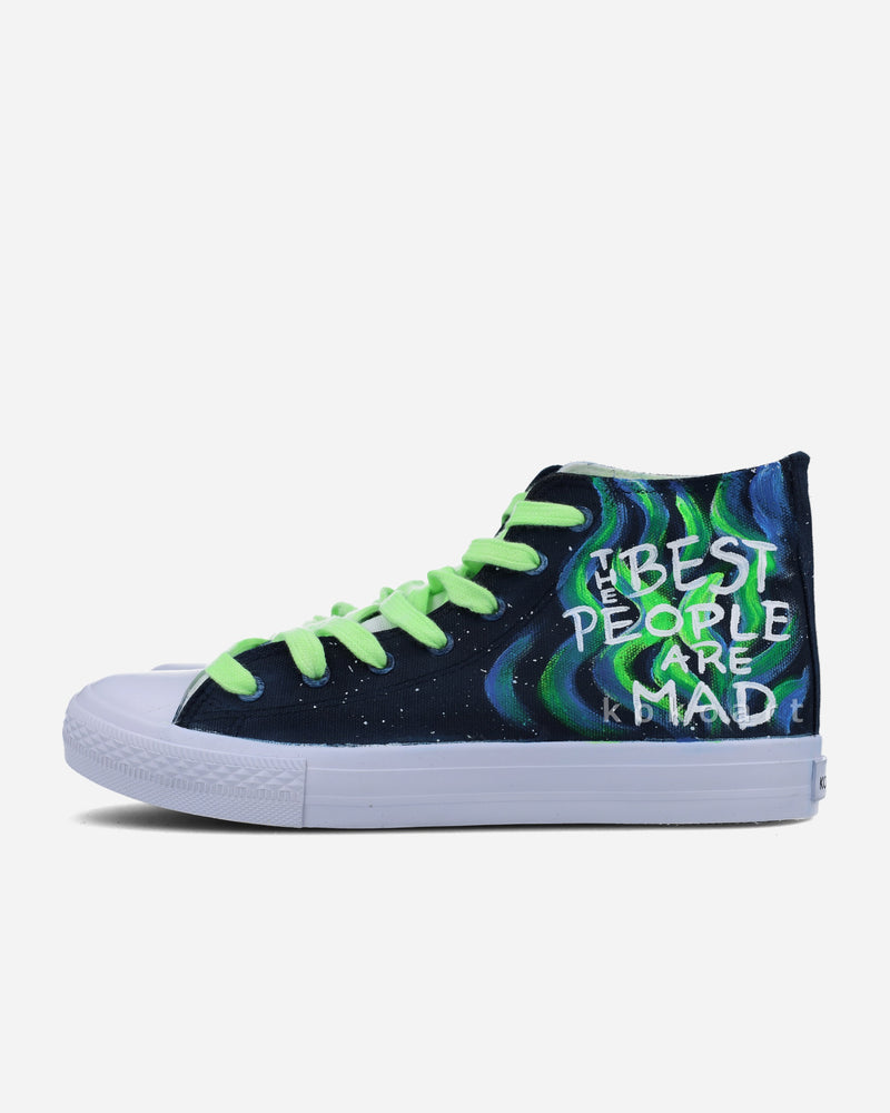 Our designs are hand painted on high quality American Recorders branded canvas shoes with waterproof fabric paint, which is then sealed and heated to ensure the longevity of the colours. Our products are also machine washable at 30 degrees.