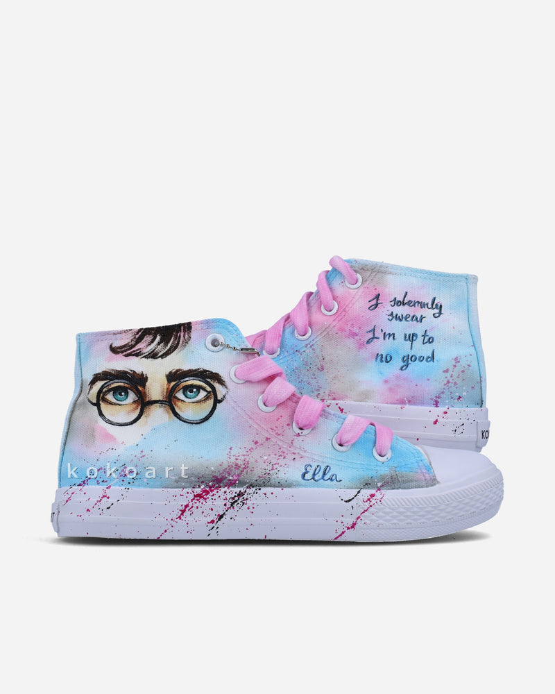 Our designs are hand painted on high quality American Recorders branded canvas shoes with waterproof fabric paint, which is then sealed and heated to ensure the longevity of the colours. Our products are also machine washable at 30 degrees.