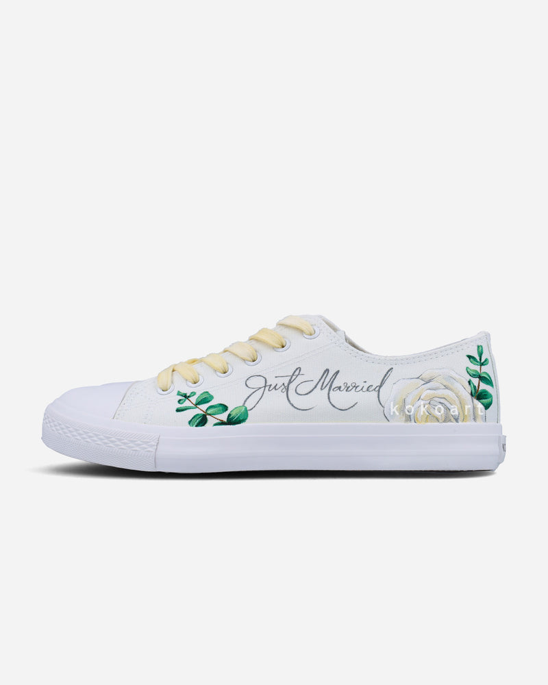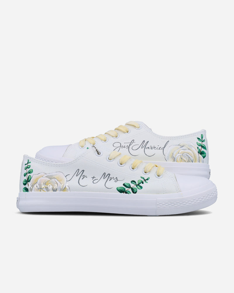 Mr & Mrs White Roses Hand Painted Wedding Shoes