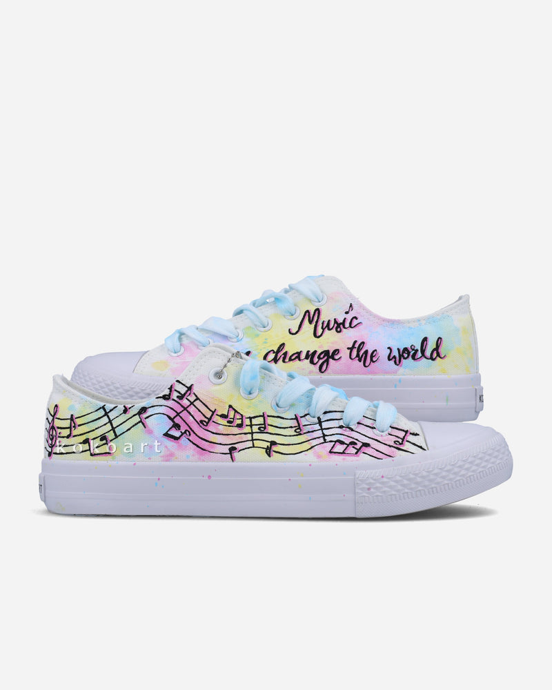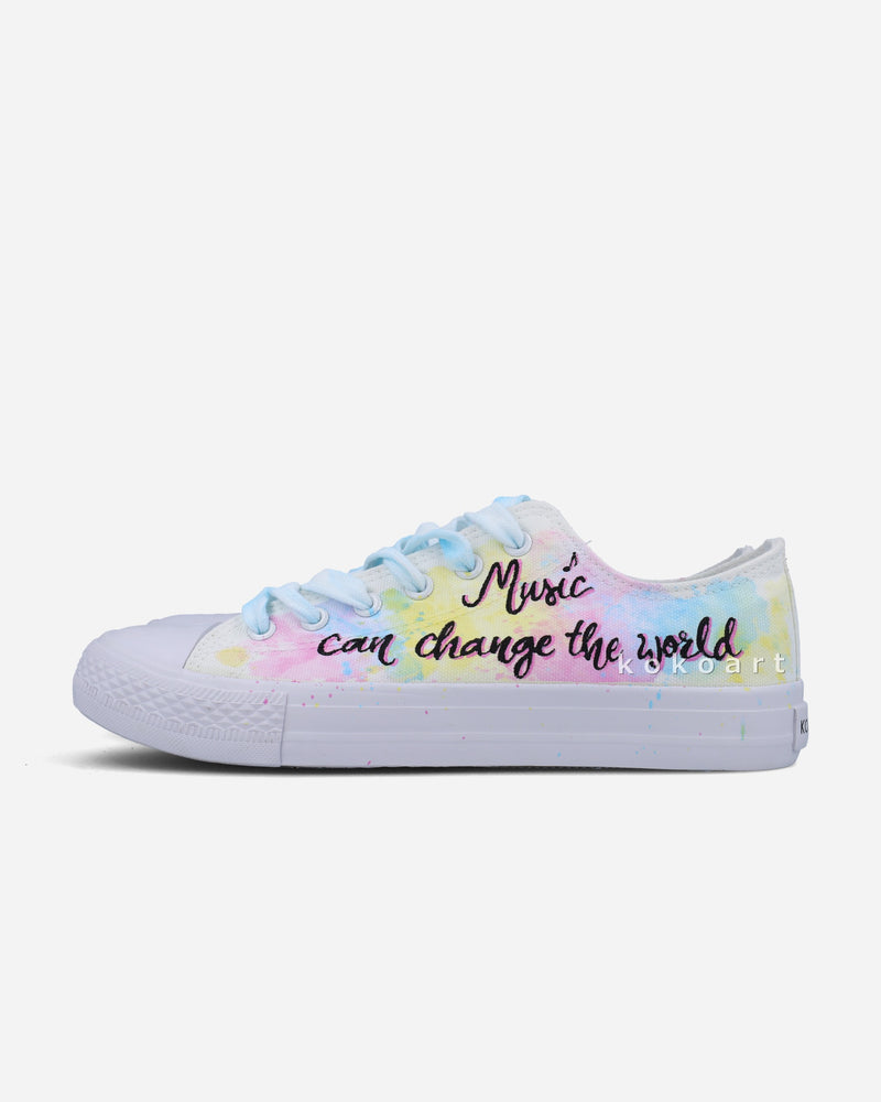 Our designs are hand painted on high quality American Recorders branded canvas shoes with waterproof fabric paint, which is then sealed and heated to ensure the longevity of the colours. Our products are also machine washable at 30 degrees.
