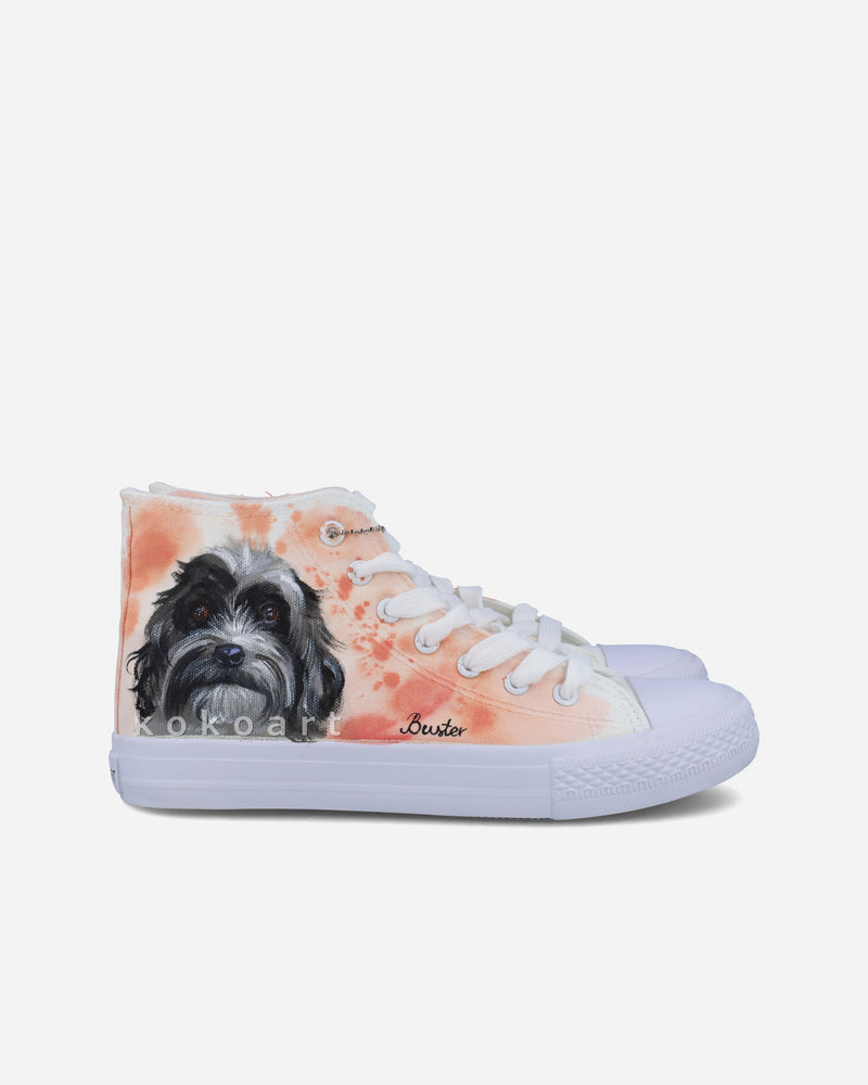 Our designs are hand painted on high quality American Recorders branded canvas shoes with waterproof fabric paint, which is then sealed and heated to ensure the longevity of the colours. Our products are also machine washable at 30 degrees.