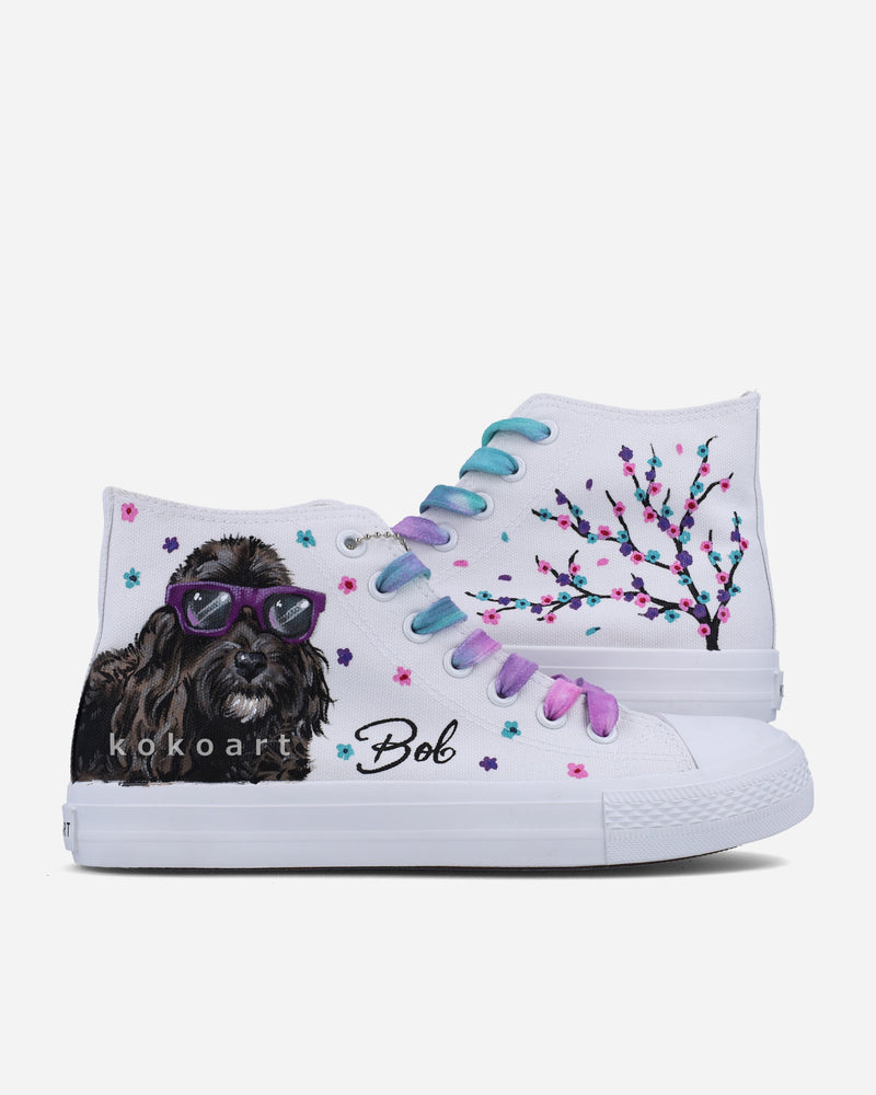 Our designs are hand painted on high quality American Recorders branded canvas shoes with waterproof fabric paint, which is then sealed and heated to ensure the longevity of the colours. Our products are also machine washable at 30 degrees.