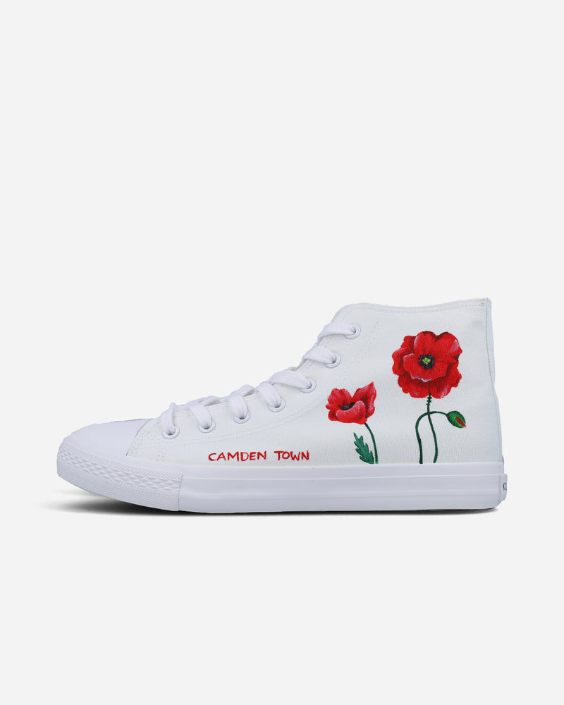 Our designs are hand painted on high quality American Recorders branded canvas shoes with waterproof fabric paint, which is then sealed and heated to ensure the longevity of the colours. Our products are also machine washable at 30 degrees.