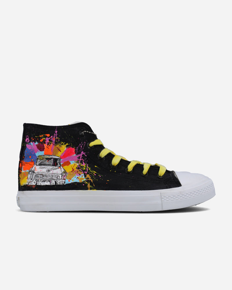 Our designs are hand painted on high quality American Recorders branded canvas shoes with waterproof fabric paint, which is then sealed and heated to ensure the longevity of the colours. Our products are also machine washable at 30 degrees.