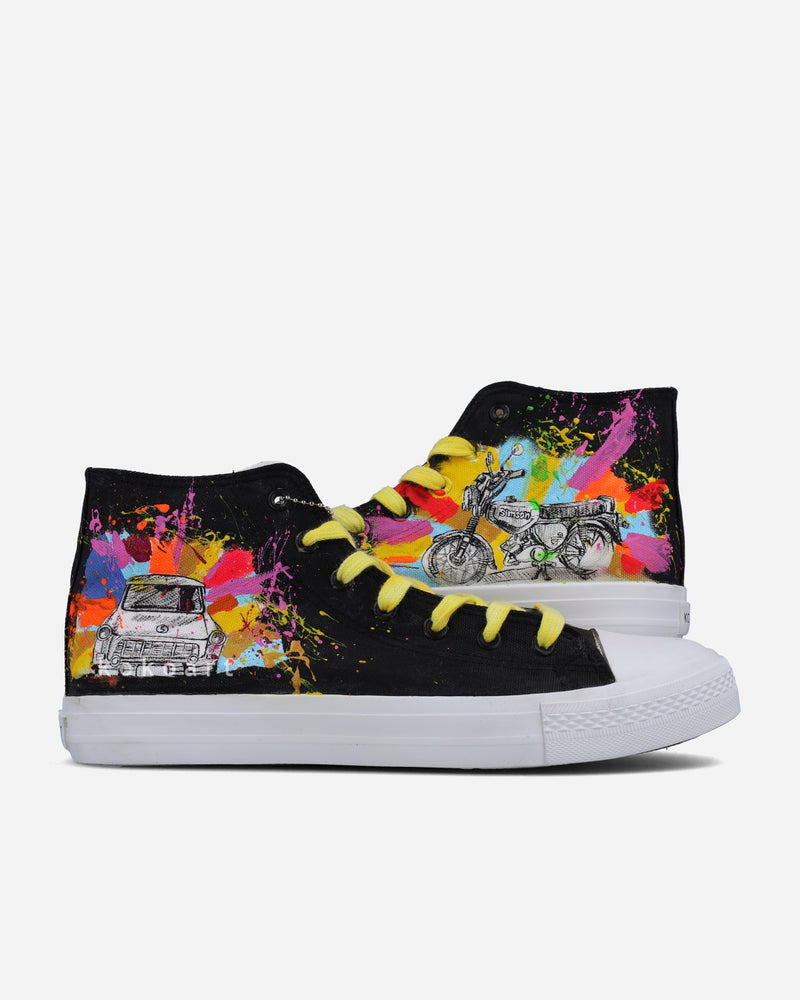 Sketchy Car & Motorcycle with Colour Splash Hand Painted Shoes