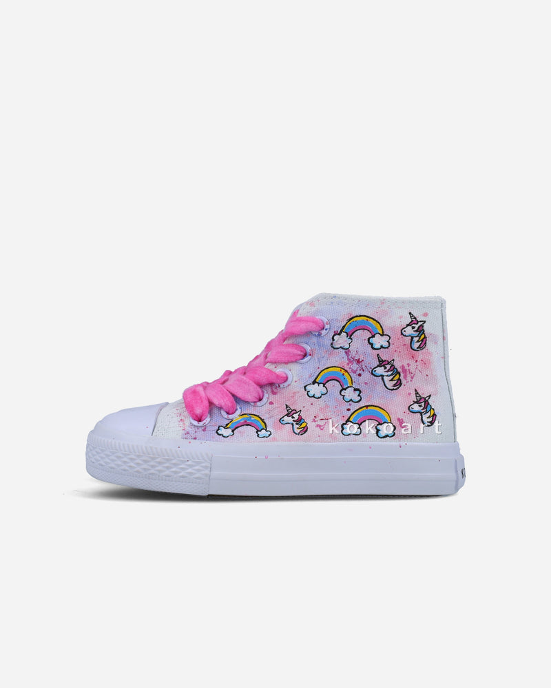 Our designs are hand painted on high quality American Recorders branded canvas shoes with waterproof fabric paint, which is then sealed and heated to ensure the longevity of the colours. Our products are also machine washable at 30 degrees.