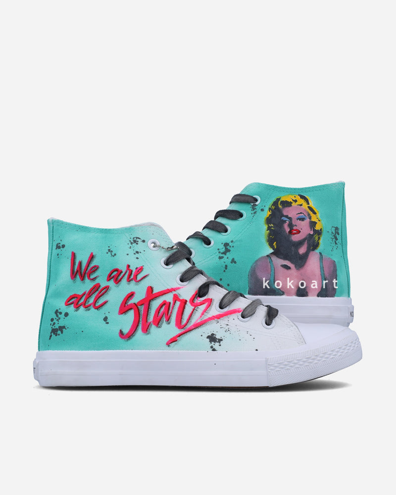 Our designs are hand painted on high quality American Recorders branded canvas shoes with waterproof fabric paint, which is then sealed and heated to ensure the longevity of the colours. Our products are also machine washable at 30 degrees.